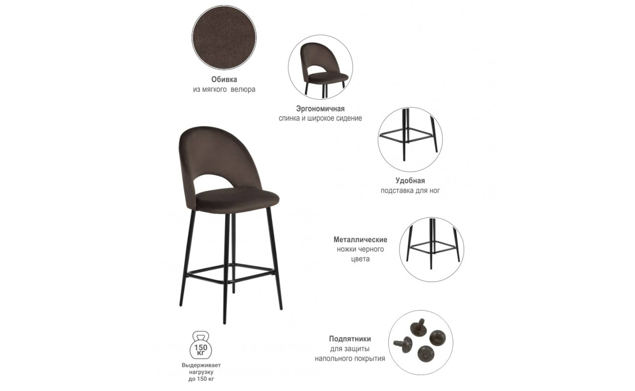 Лаконичный дизайн полубарного стула Leo с полукруглой спинкой в велюровой обивке понравится любителям комфорта и уюта. Благодаря сдержанным расцветкам и оригинальному силуэту стулья Leo подходят не только для домашних интерьеров, но и для оформления кафе, холлов отелей или офисных центров.