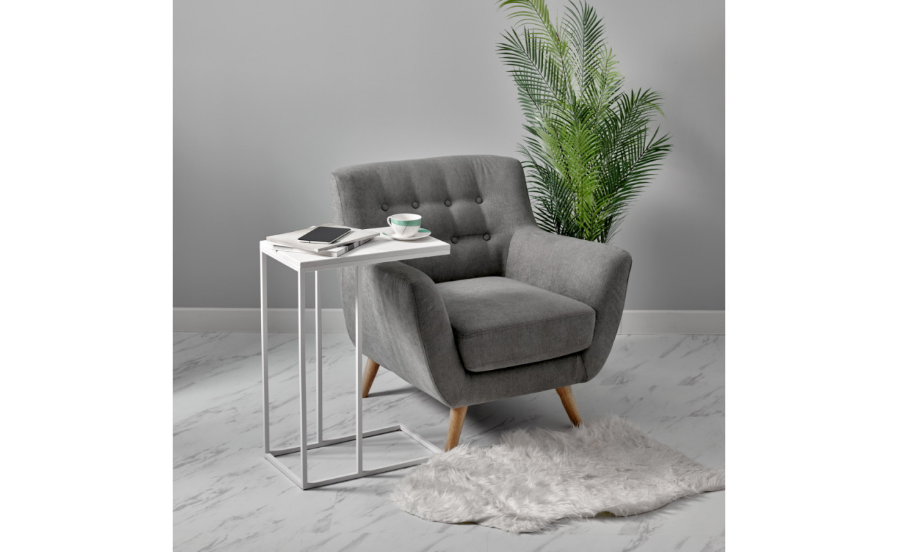 Придиванный столик Loft станет настоящим дополнением к интерьеру в современном стиле. Столик не займет много места и легко поместится рядом с диваном или креслом. Конструкция столика позволяет расположить столешницу прямо над диваном или боковиной дивана, что достаточно удобно и функционально. Столик выполнен из прочного ЛДСП оттенка белый мрамор, что придает ему изящный вид, а белые металлические ножки добавляют конструкции дополнительную изящность и устойчивость. Будьте уверены, что столик Loft станет удачным приобретением для вашего уютного уголка.