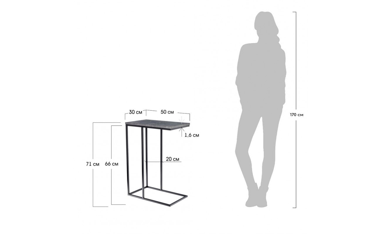 Технические характеристики Придиванный столик Loft 50x30см, белый мрамор с белыми ножками