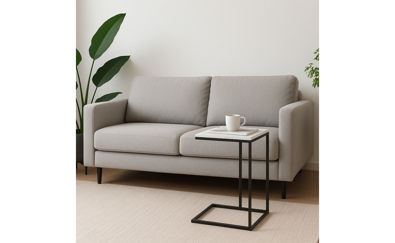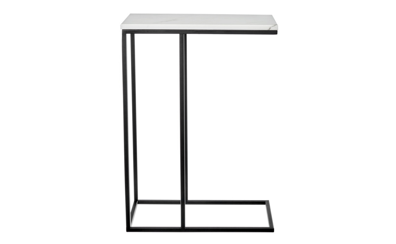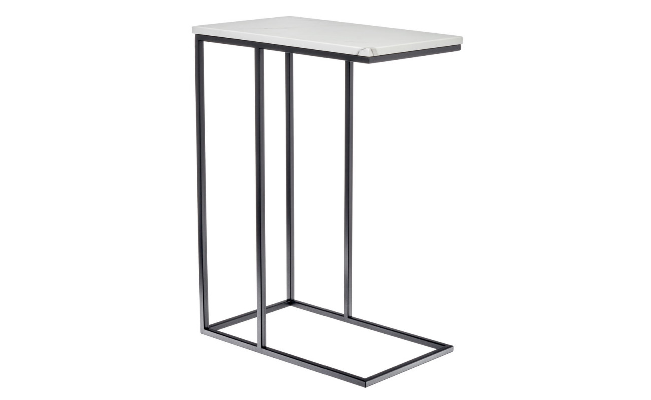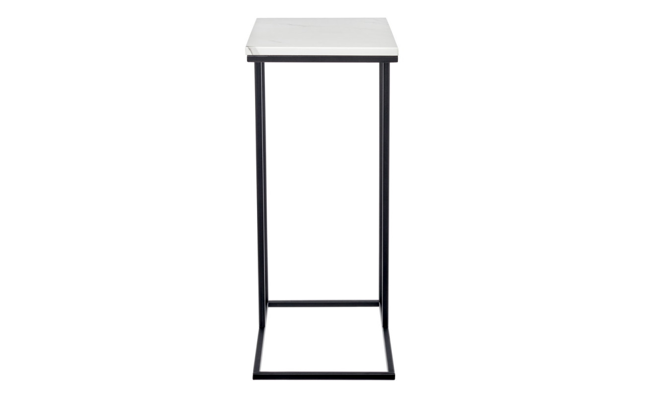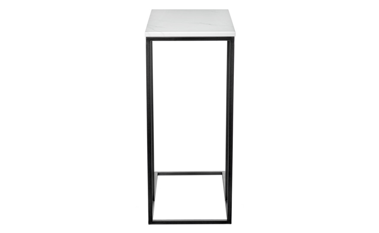 Придиванный столик Loft 50x30см, белый мрамор, чёрные ножки