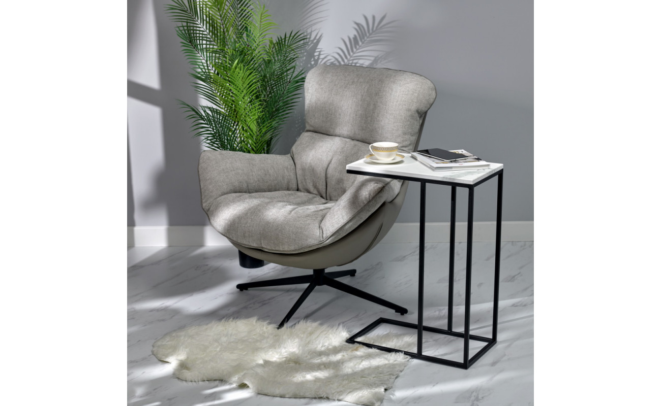 Придиванный столик Loft - это стильный и функциональный предмет мебели, который дополнит интерьер в современном стиле. Loft не займет много места и легко поместится рядом с диваном или креслом. Конструкция столика позволяет расположить столешницу прямо над диваном или боковиной дивана, что достаточно удобно и функционально. Столик выполнен из прочного ЛДСП оттенка белый мрамор, что придает ему изящный вид, а черные металлические ножки добавляют конструкции дополнительную воздушность и устойчивость. Будьте уверены, что столик Loft станет удачным приобретением для вашего уютного уголка.