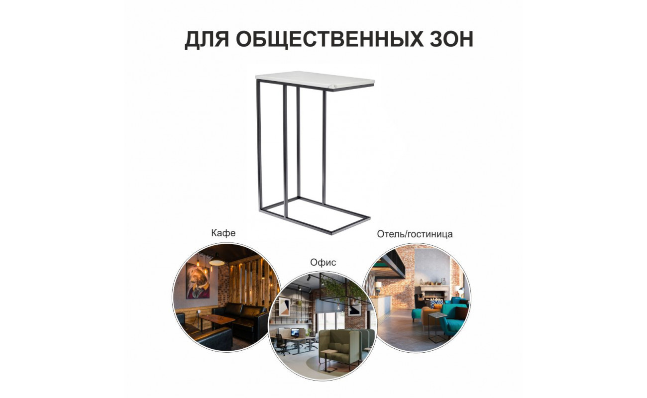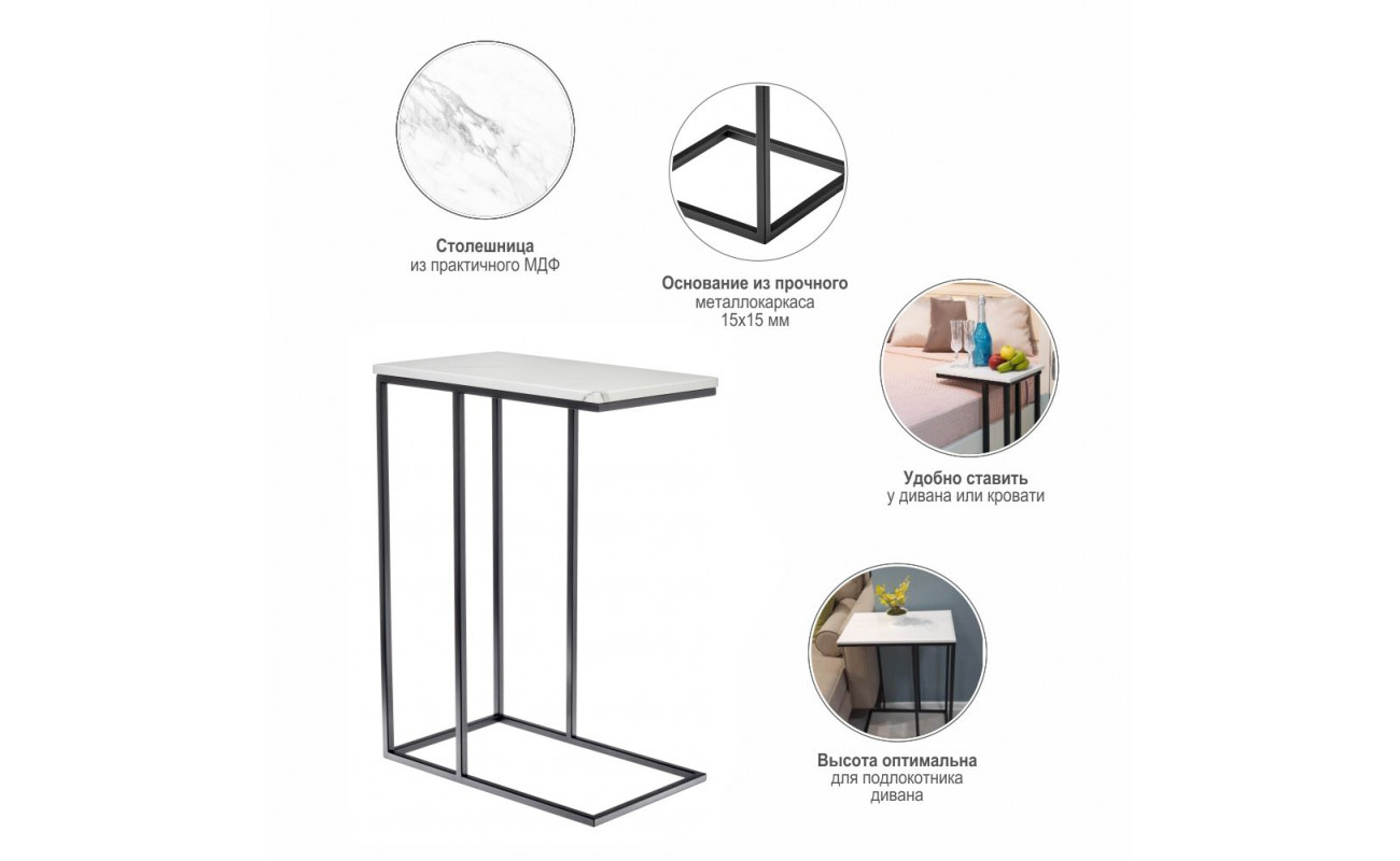 Технические характеристики Придиванный столик Loft 50x30см, белый мрамор, чёрные ножки