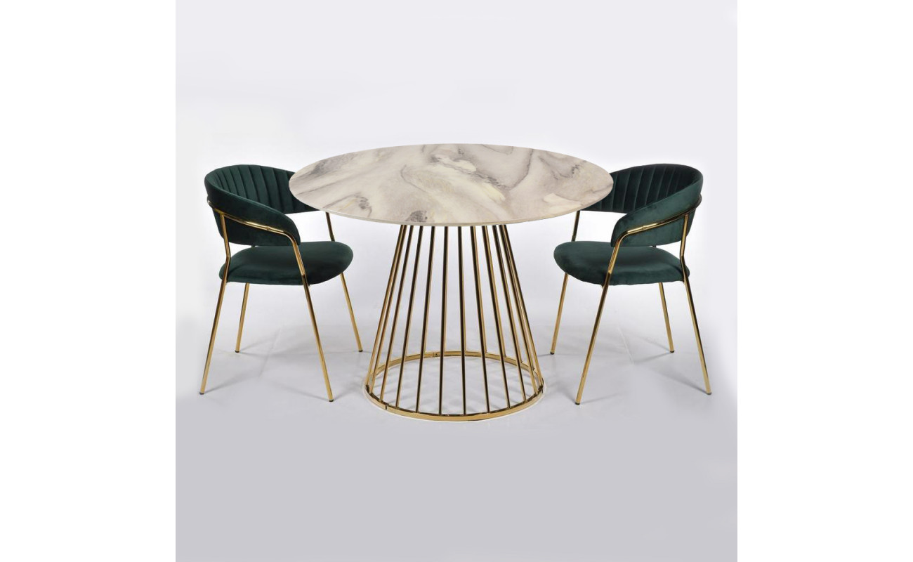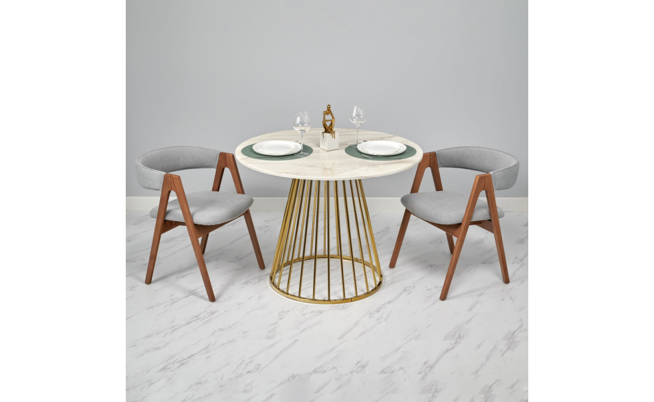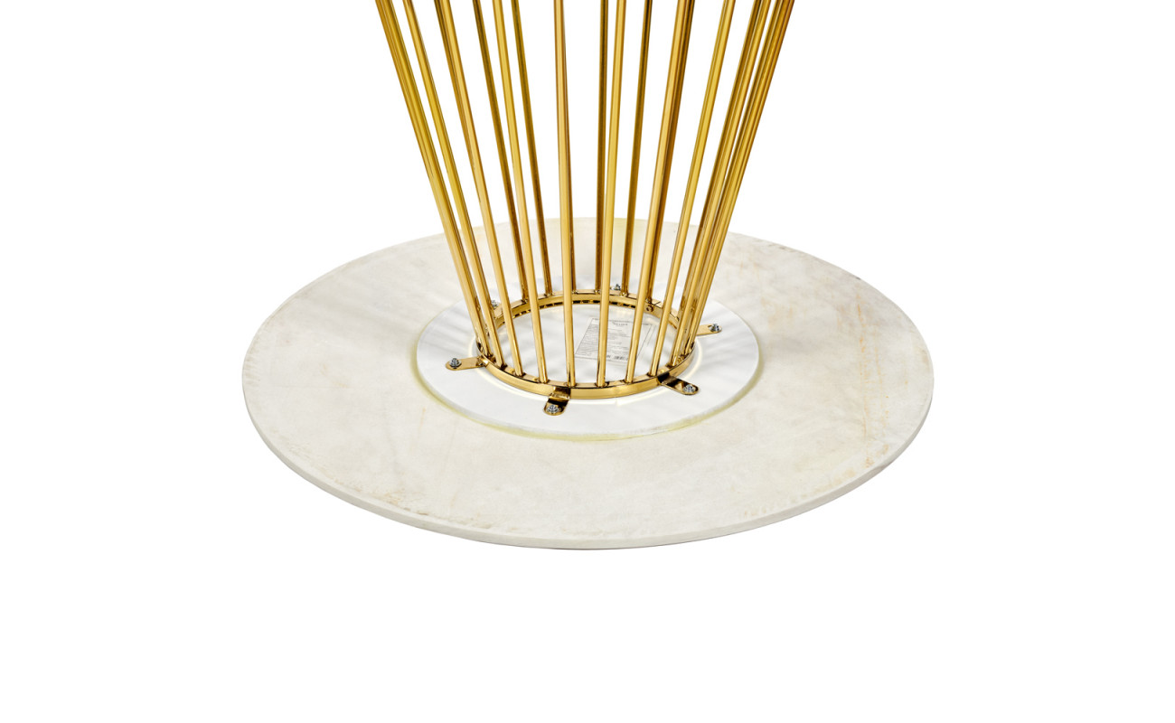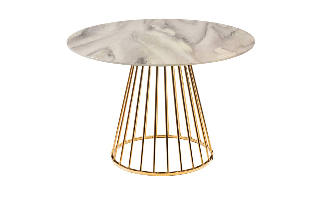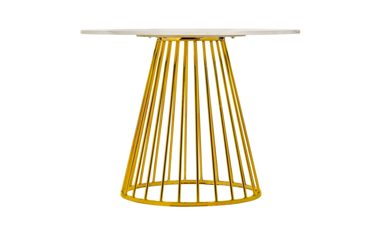 Стол Liverpool диам.100см, керамогранит белый мрамор с золотистыми ножками