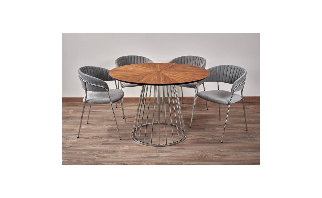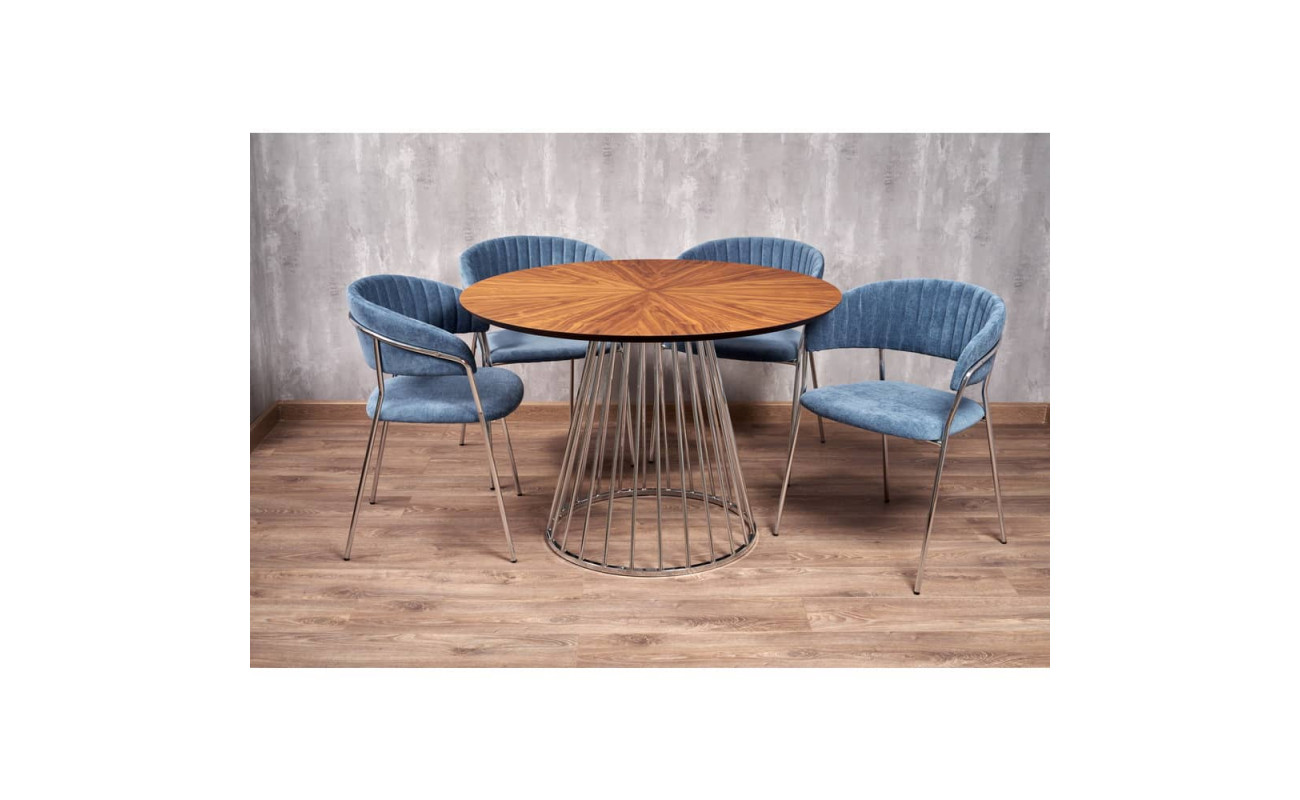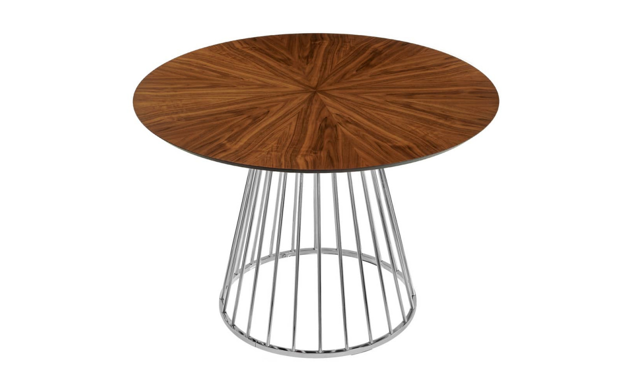 Стол Liverpool диам.110см, шпон орех лучевой набор, с хромированными ножками