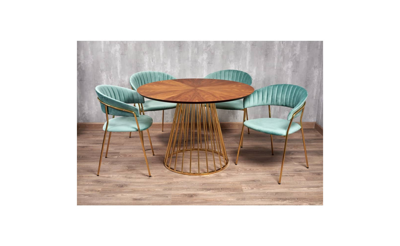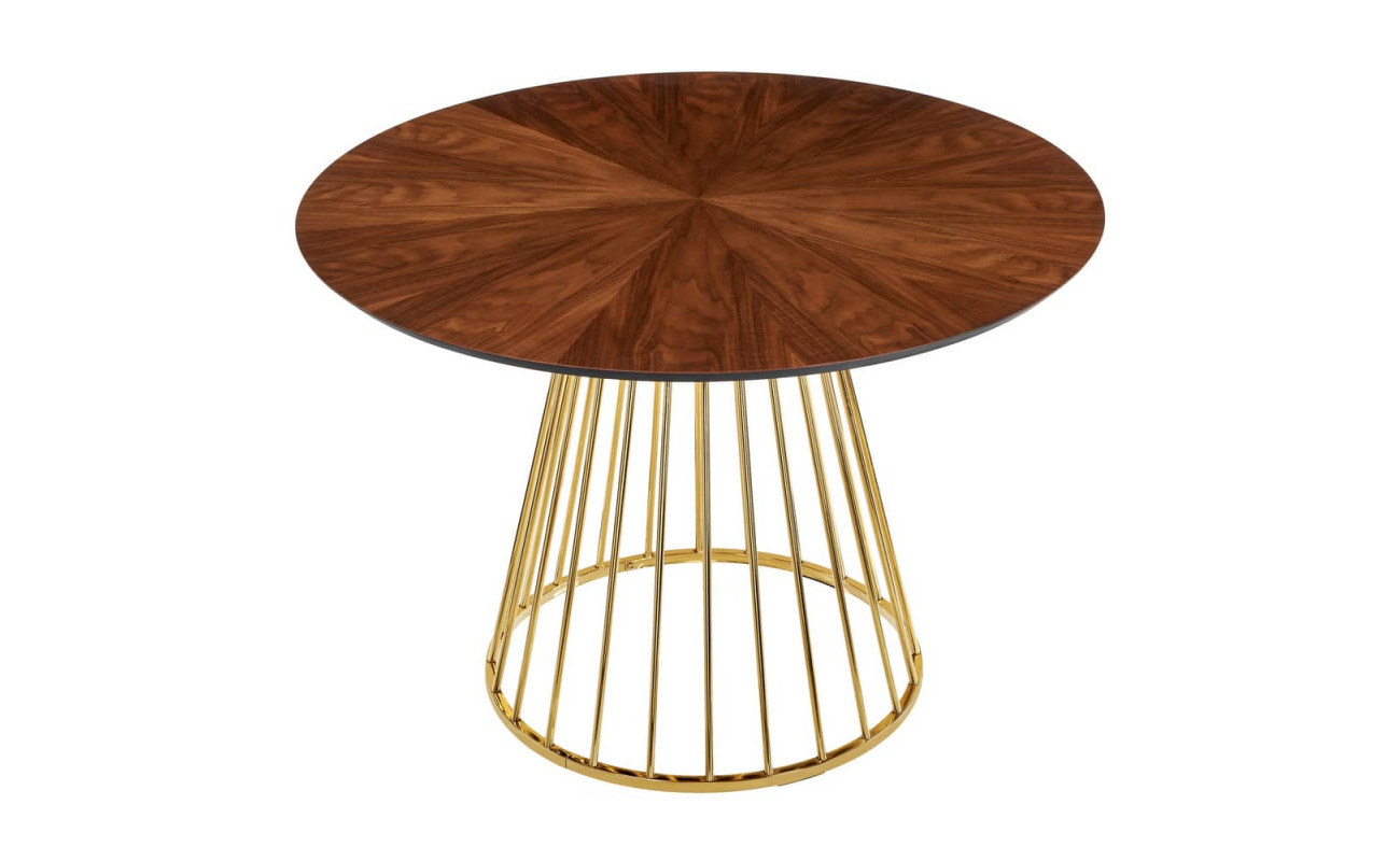Стол Liverpool диам.110см, шпон орех лучевой набор, с золотистыми ножками