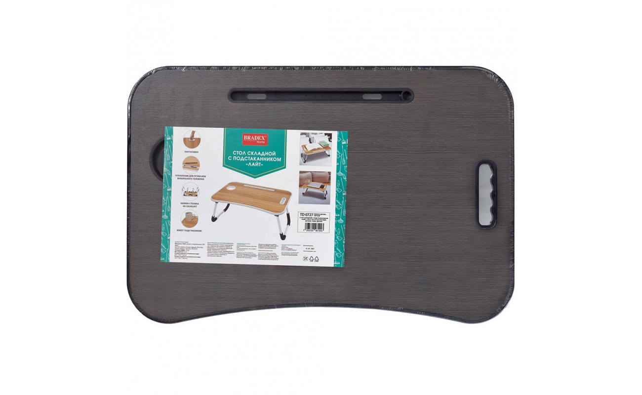 Складной стол Лайт — находка для тех, кто работает за ноутбуком с дивана и не хочет садиться за письменный стол. Компактная конструкция позволяет парой движений разобрать столик (достаточно лишь перевернуть его, откинуть ножки до конца и перевернуть обратно) и экономит место в сложенном состоянии. Стол имеет встроенный подстаканник и углубления, куда можно сложить ручки или смартфон. Столешница сделана из безопасного и экологически чистого материала, устойчива к влаге и царапинам. Антискользящие накладки на ножках стола предотвратят неожиданные падения конструкции. Работать из кровати или сервировать завтрак в постель, читать перед сном или обедать на природе — какую бы цель вы ни преследовали, складной стол Лайт реализует её!