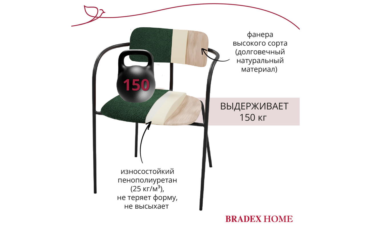 Металлические ножки диаметром 19 мм и толщиной 1,2 мм гарантируют стабильность и долговечность, выдерживая нагрузку до 150 кг.
