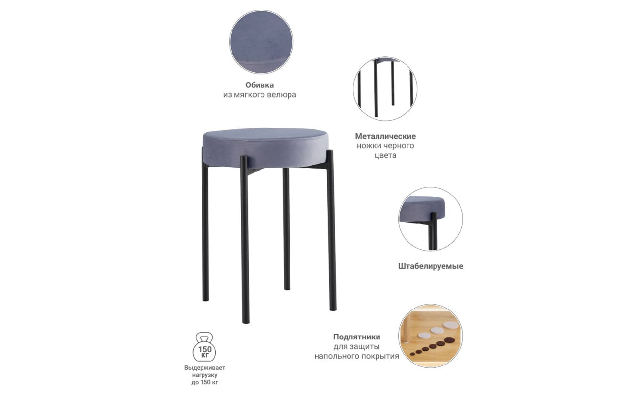 Изящный табурет — мягкий стул Bug — практичный, компактный и поддающийся штабелированию предмет мебели. Этот стильный мягкий стул способен поддержать утонченную стилистику домашнего интерьера. Цветовая палитра стульев Bug представлена трендовыми цветами, которые отлично сочетаются между собой и вписываются в любую палитру. Обивка стула выполнена из практичного и приятного на ощупь велюра, сохраняющего презентабельный вид в ходе долгой службы. Ткань неприхотлива в уборке и легко поддается сухой чистке при помощи пылесоса, щётки или валика.