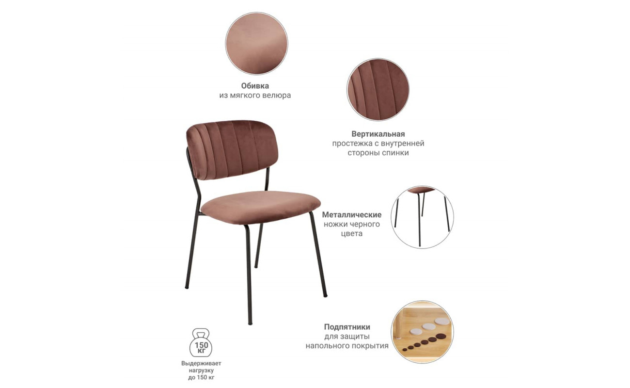 Стул Carol с мягкой спинкой и удобным сиденьем украсит любое помещение, будь то столовая, офисная переговорная, кабинет или холл. Силуэт стула минималистичен: строгие ножки черного цвета из стали, спокойная обивка из высококачественного велюра, классическая скругленная форма спинки для лучшей поддержки и правильной осанки. Сдержанный, лаконичный дизайн стула отлично впишется в современный интерьер практически любого пространства и задаст правильное настроение. Благодаря удобной посадке стул Carol - это прекрасное решение для кафе, зоны ожидания на ресепшн и в фойе бизнес-центров. В комплект входит инструкция и аксессуары для сборки.