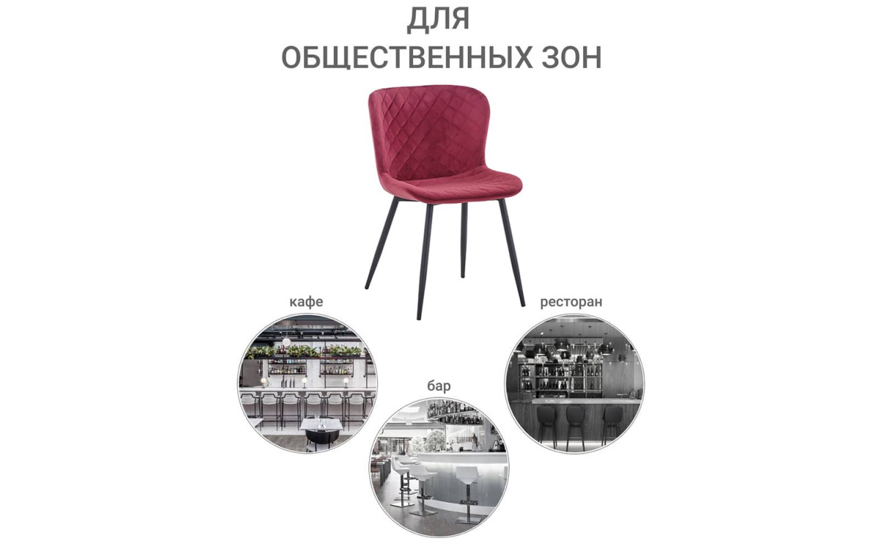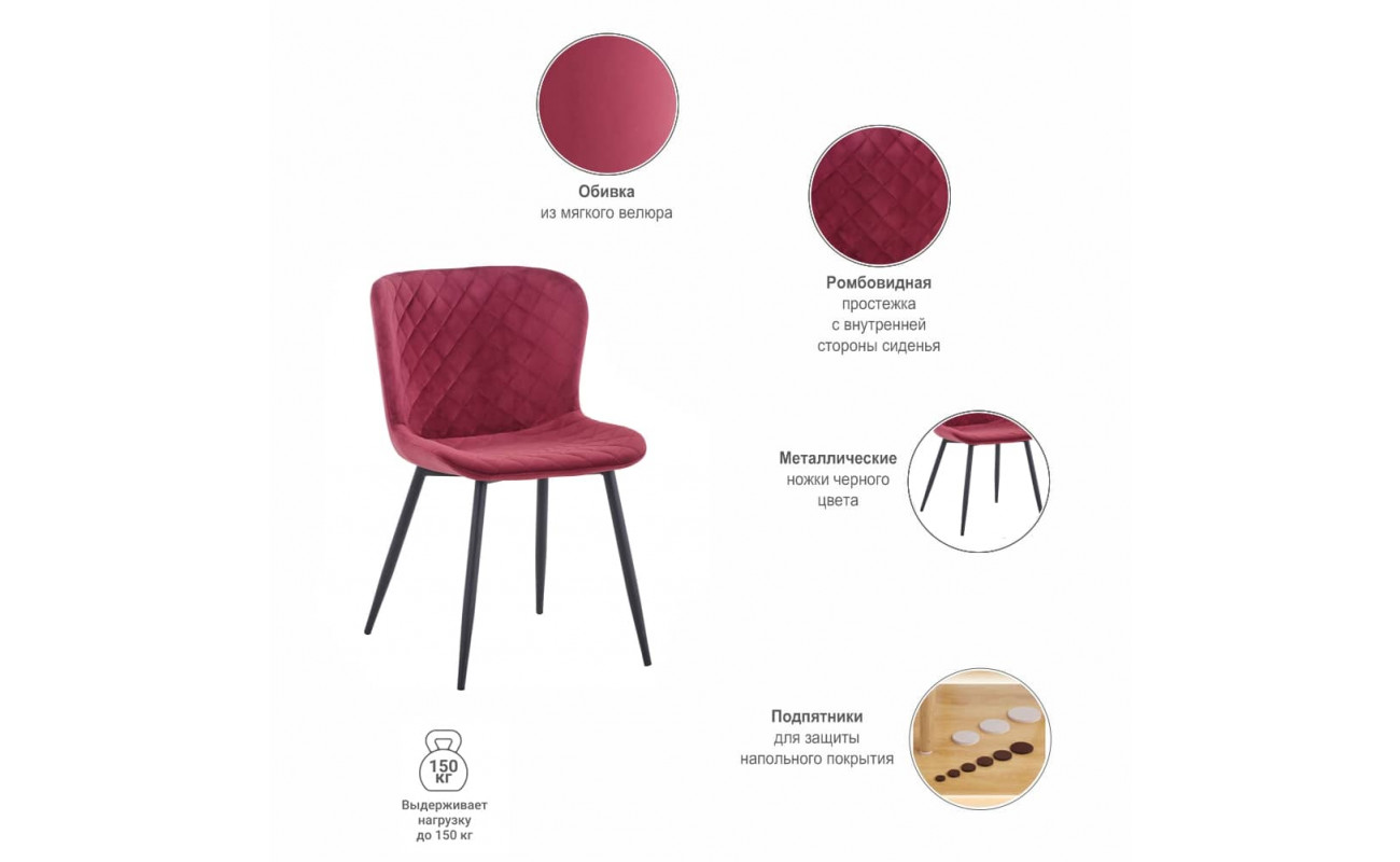 Ножки стула имеют прочную конструкцию, выполнены из металла окрашенного в чёрный цвет. Насыщенные цвета обивки станут акцентом в любом интерьере.