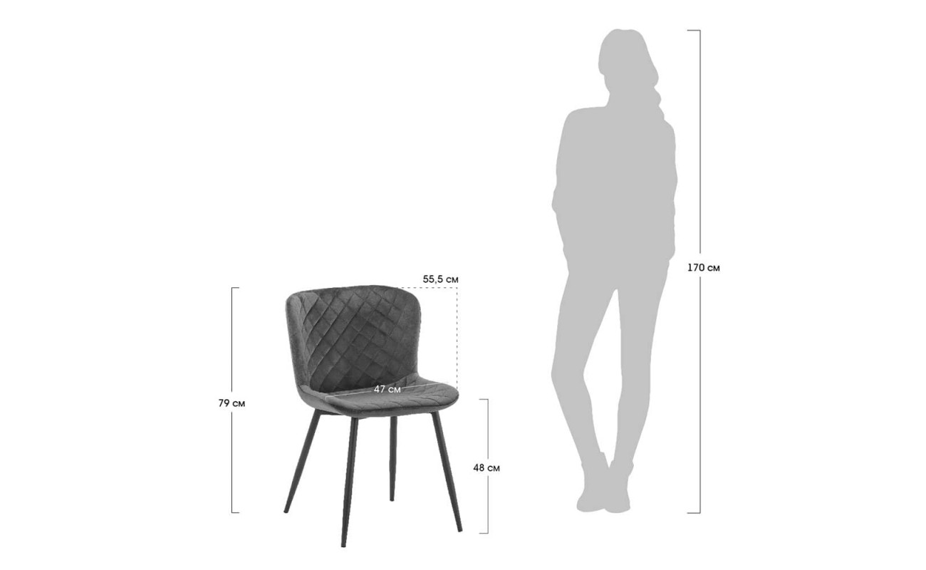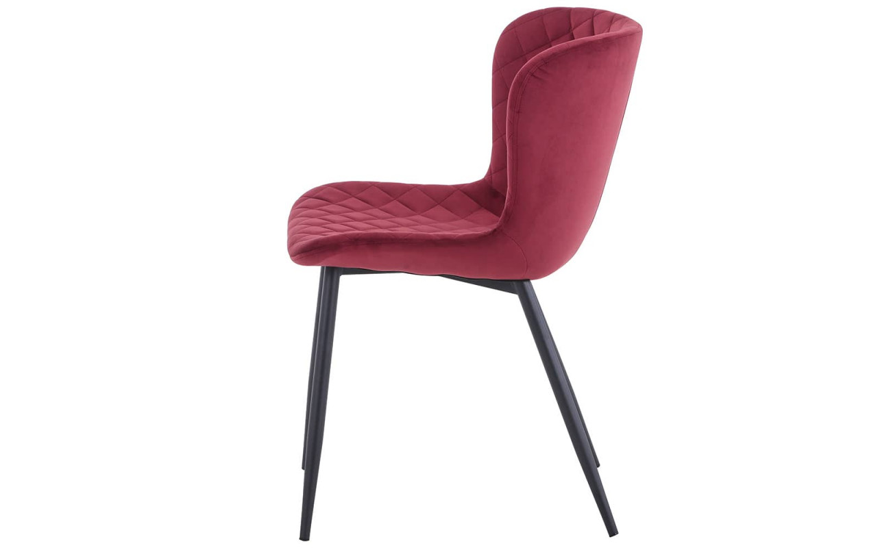 Стул Darcy элегантная модель с обивкой из мягкого велюра. Форма сиденья имеет приятные округлые линии. Ромбовидная простёжка спинки и сиденья придаёт изюминку и притягивает взгляд.