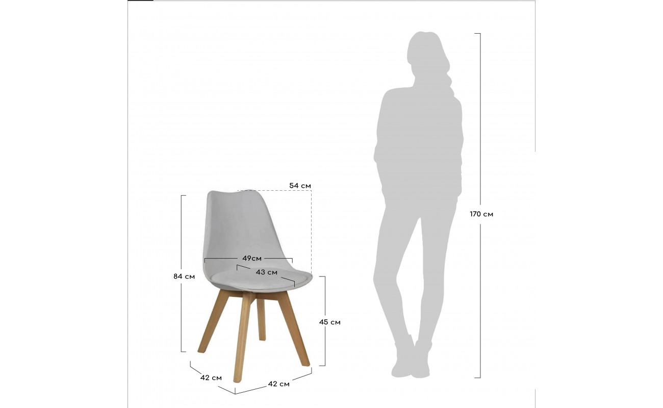 Сиденье выполнено из литого полипропилена обтянутого эко кожей, ножки и опоры из массива бука.