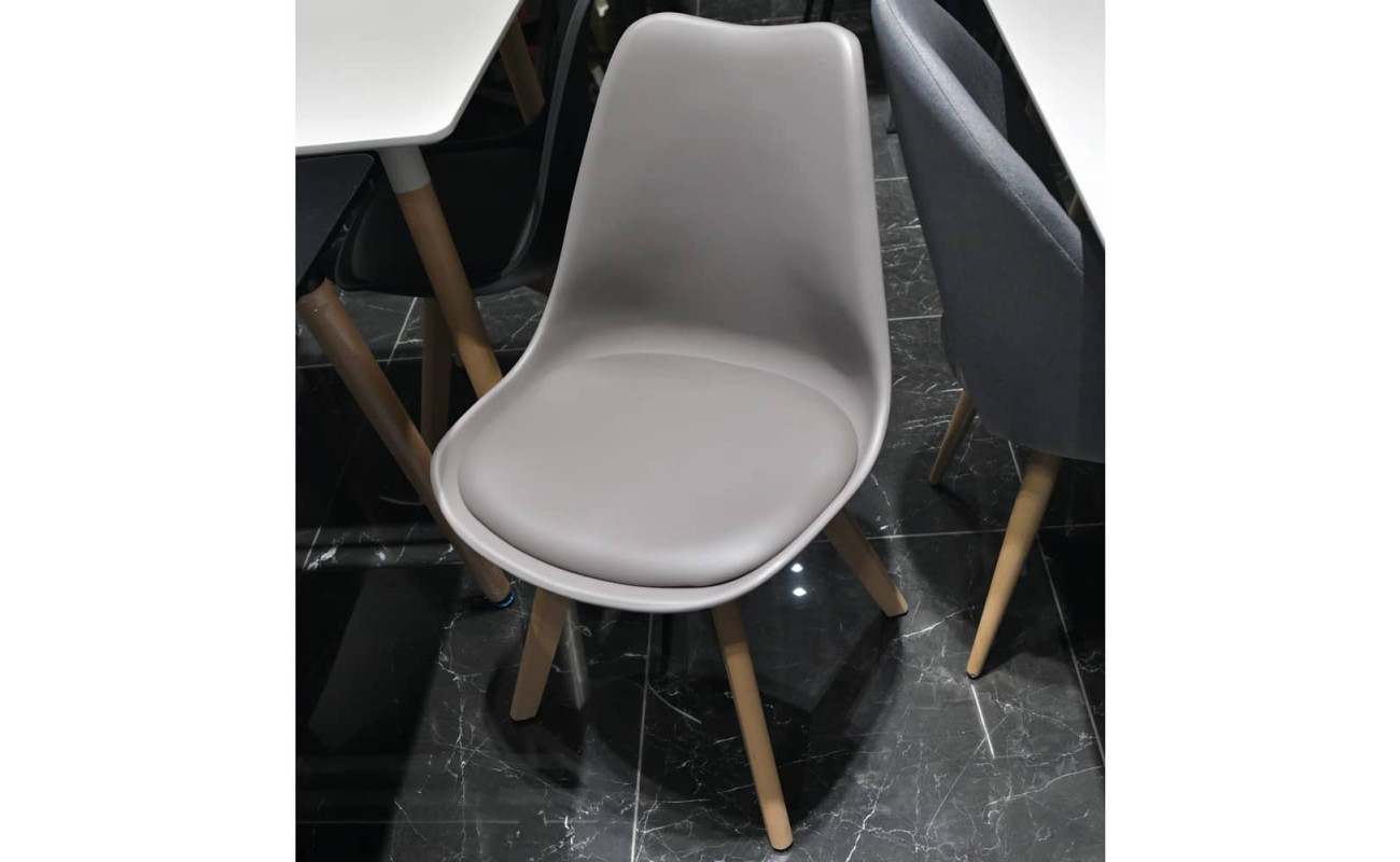 Сиденье выполнено из литого полипропилена обтянутого эко кожей, ножки и опоры из массива бука.