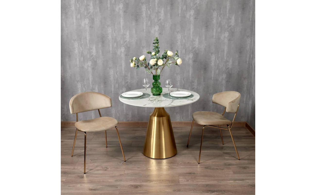 Ножки стула выполнены из полированной нержавеющей стали с напылением нитрида титана, что создает эффект натурального золота. Это придает стулу элегантный и роскошный вид.