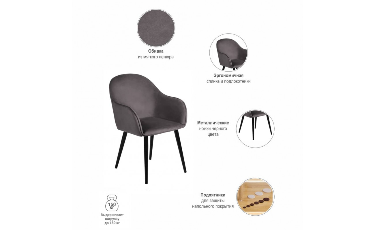 | Цвет ножекЧёрный | Материал спинкиВелюр | Материал ножекМеталл |