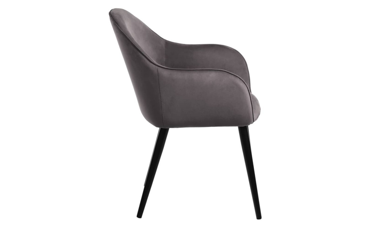 Хотите купить кресло? Не спешите! Стул Frida такой же мягкий и удобный, как кресло и тоже имеет подлокотники. При этом он намного легче, мобильнее и занимает меньше места. Отличительная особенность серии в использовании удобных подлокотников и мягкой рогожки для обивки. Нейтральный тёмно-серый цвет подчеркнет классический интерьер. Сочетание серого и черного цветов — это классика, в которой стулья для кухни или гостиной подчеркнут строгость и изысканность интерьера. А металлические ножки будут отлично сочетаться с мебелью с аналогичными ножками или фурнитурой.