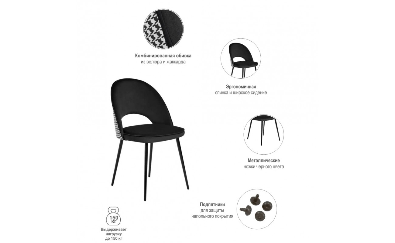| Цвет ножекЧёрный | Материал спинкиВелюр, жаккард | Материал ножекМеталл |