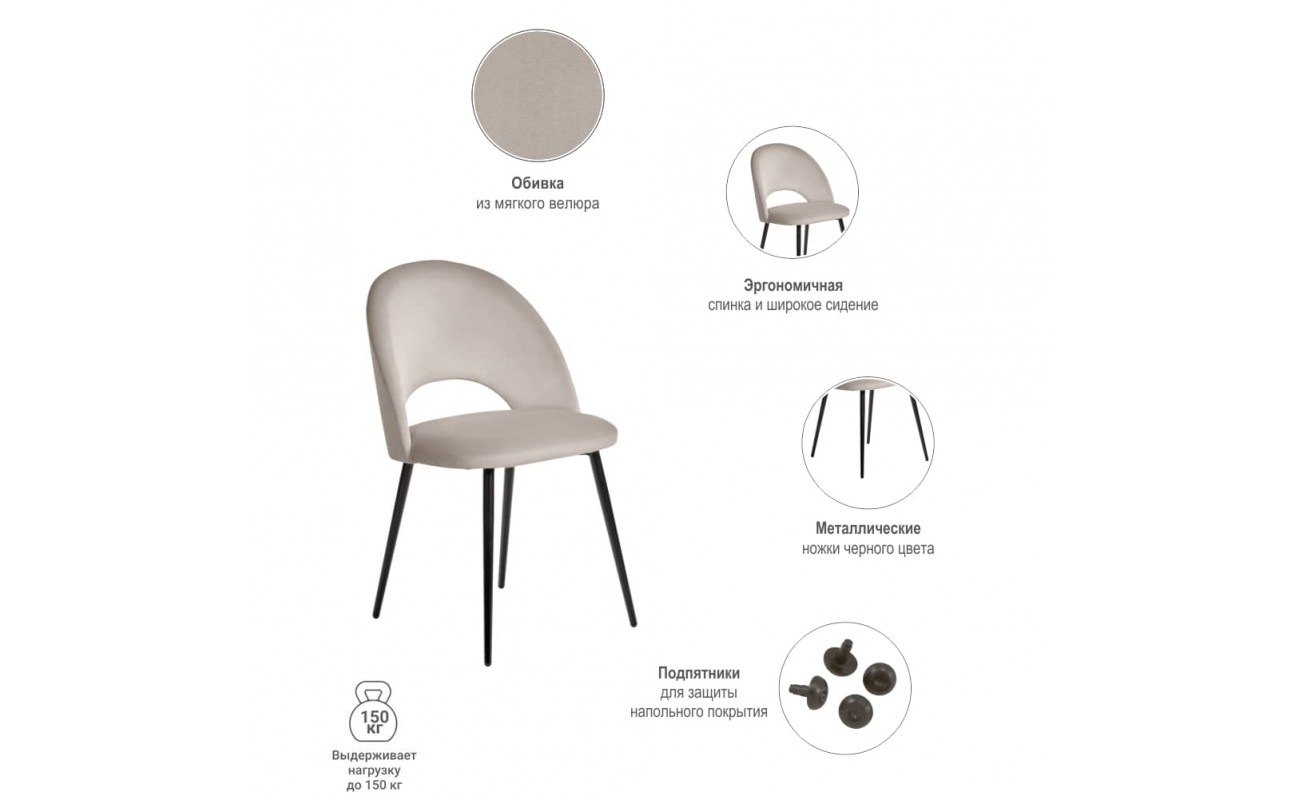 | Цвет ножекЧёрный | Материал спинкиВелюр | Материал ножекМеталл |