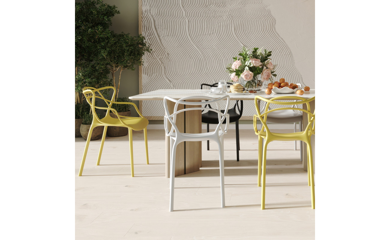Варианты матовых отделок и металлизированного эффекта пластика расширяют возможность реализаций со стульями Masters в разных по стилю и дизайну помещениях
