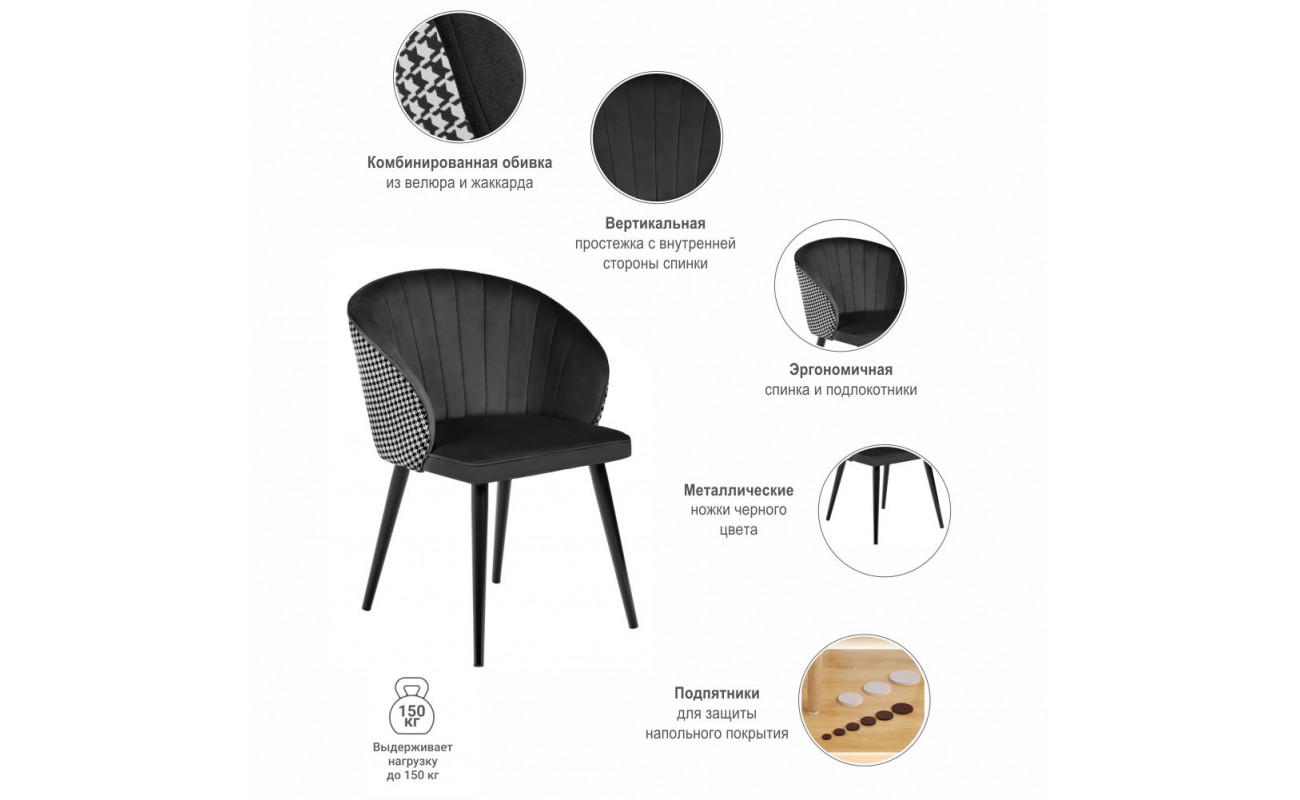 | Цвет ножекЧёрный | Материал спинкиВелюр, жаккард | Материал ножекМеталл |