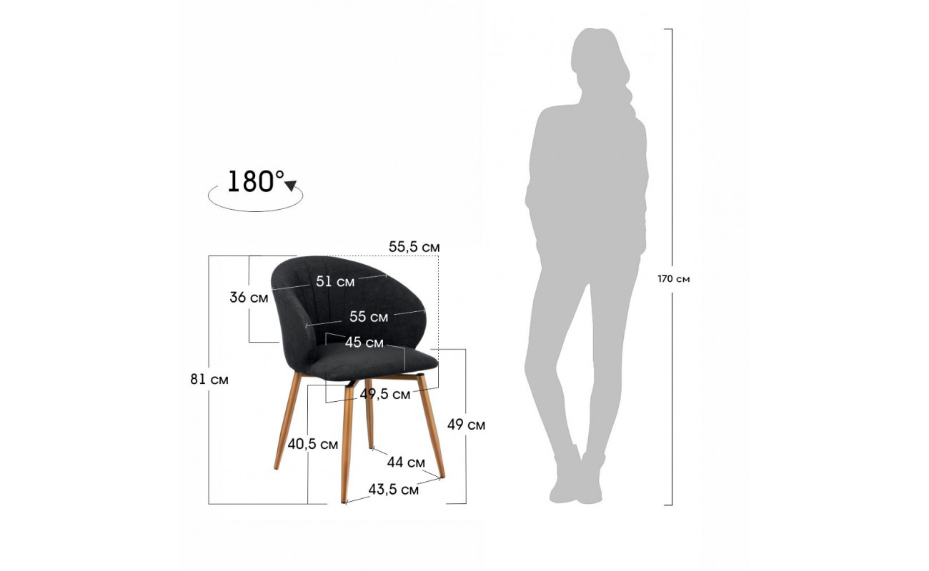 Технические характеристики Стул Paola графит, матовое золото, на поворотном механизме