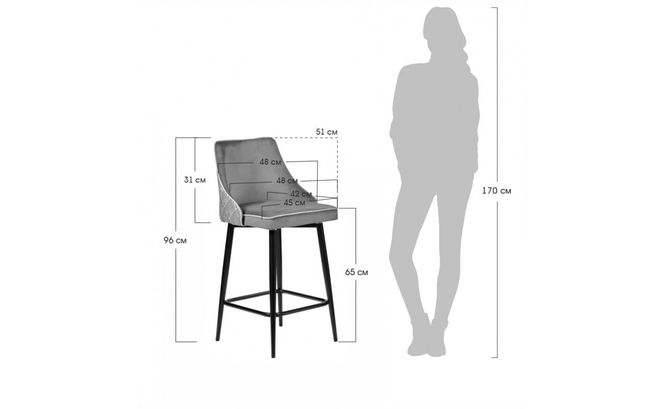 | Цвет ножекЧёрный | Материал спинкиВелюр | Материал ножекМеталл |