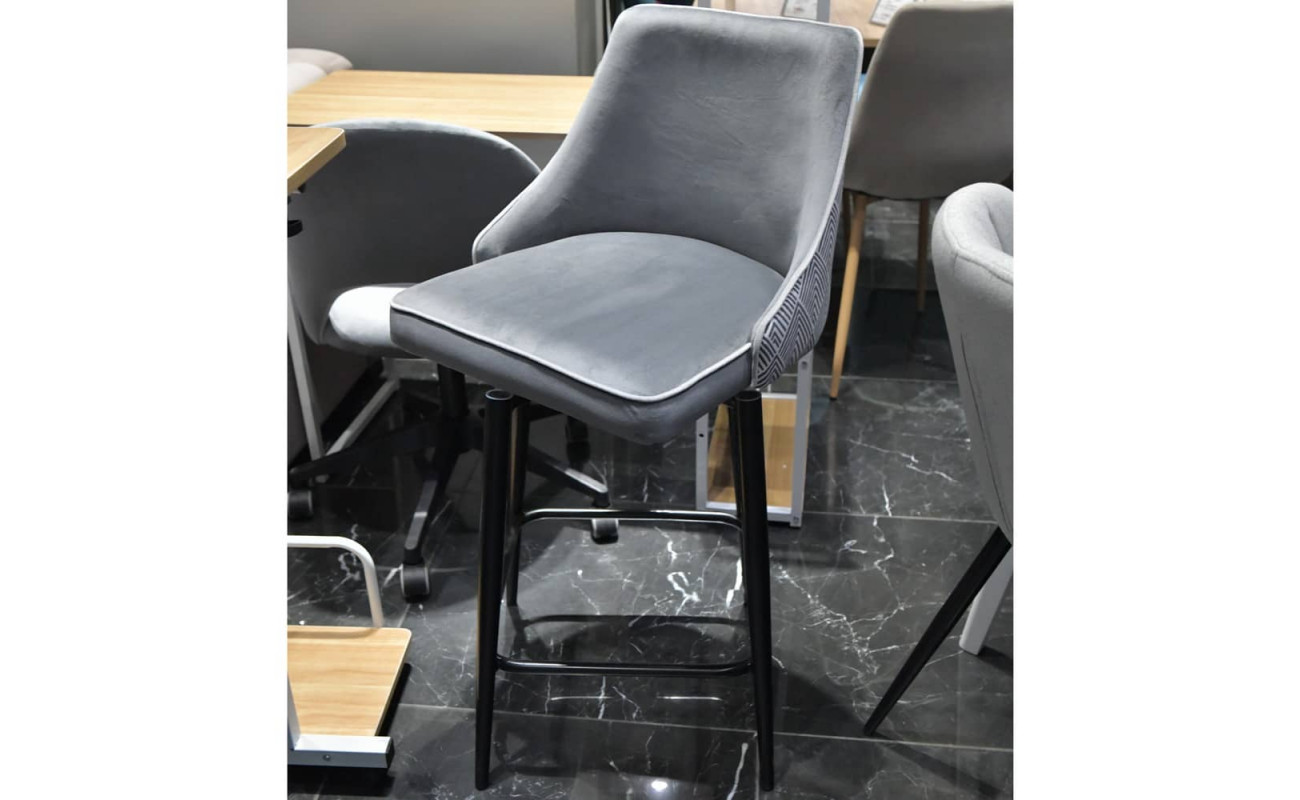 Стул полубарный Dave серый с жаккардом, с поворотным механизмом