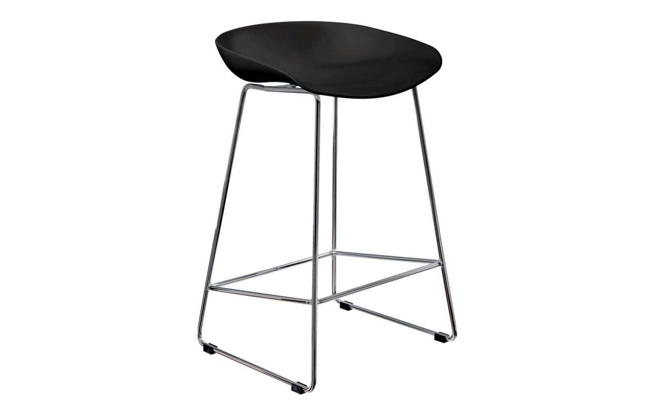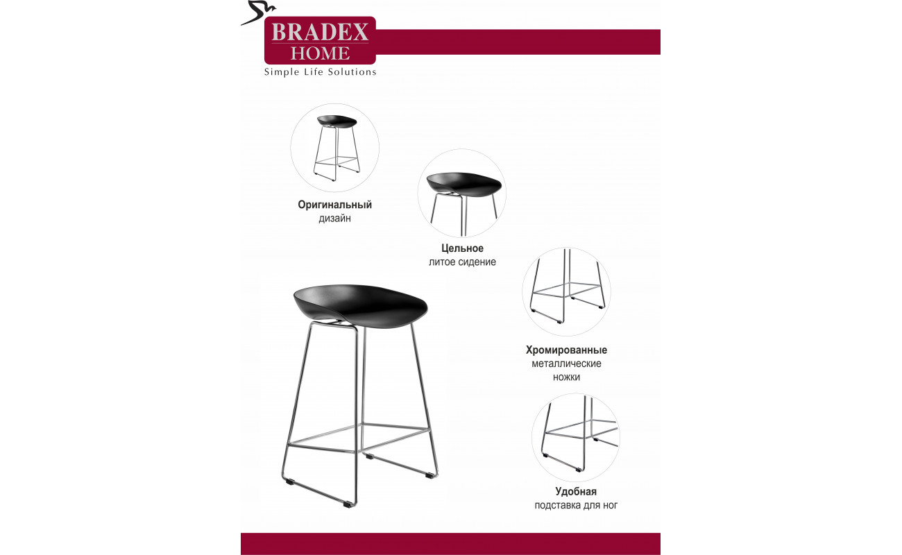 Утончённые металлические хромированные опоры, сиденье из пластика с невысокой спинкой - это минималистический современный дизайн полубарного стула NEO черный.