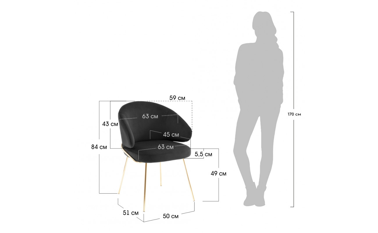 | Цвет ножекЗолотой | Материал спинкиВелюр | Материал ножекМеталл |