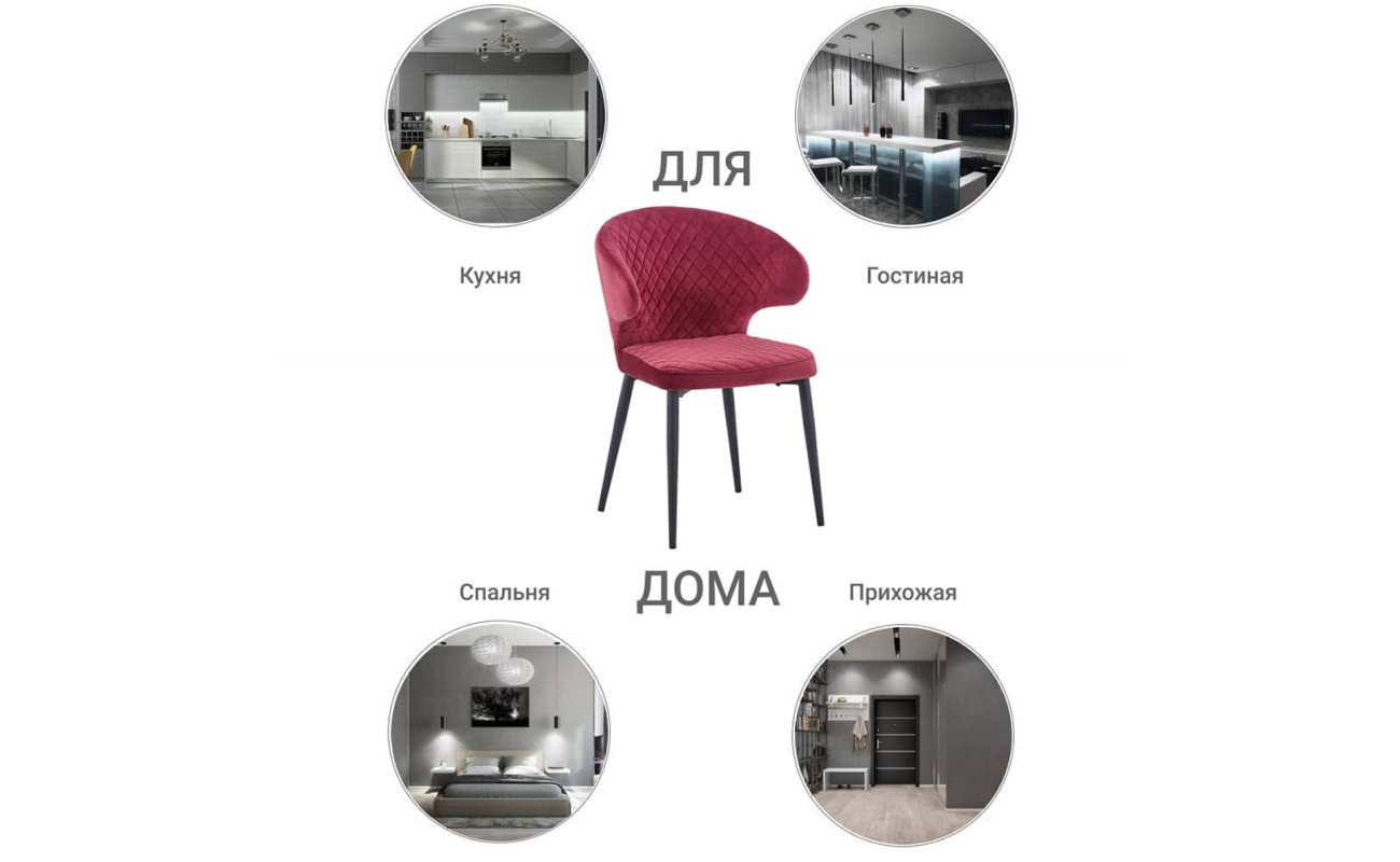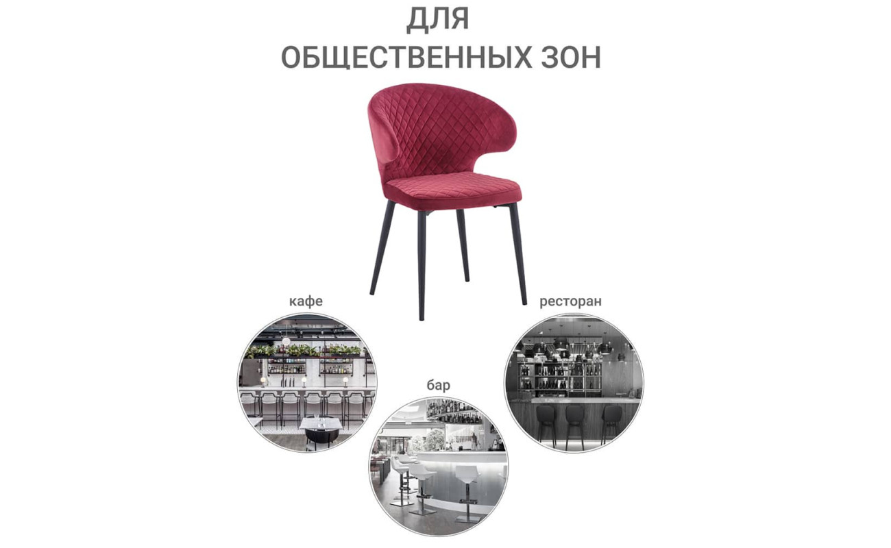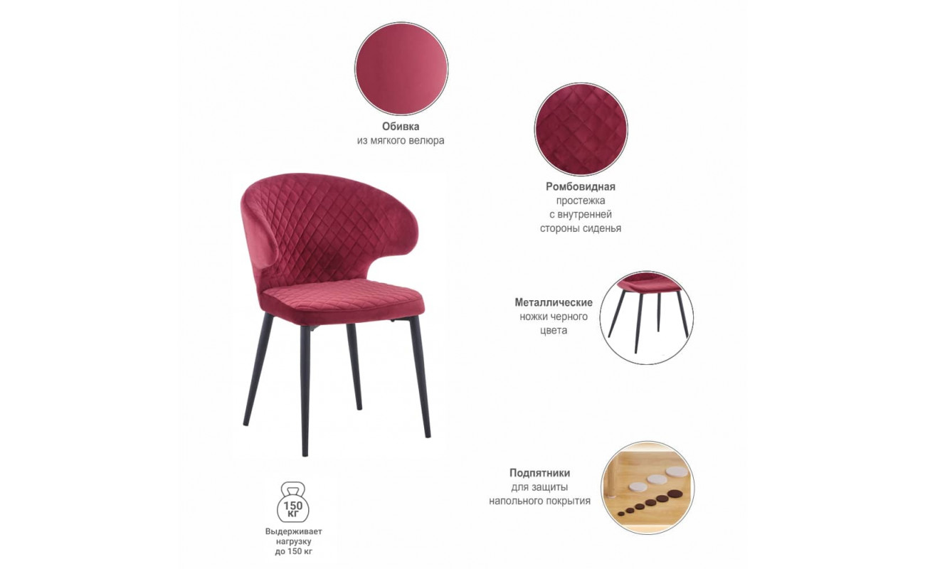 Ножки стула имеют прочную конструкцию, выполнены из металла и окрашенного в чёрный цвет. Насыщенные цвета обивки станут акцентом в любом интерьере.