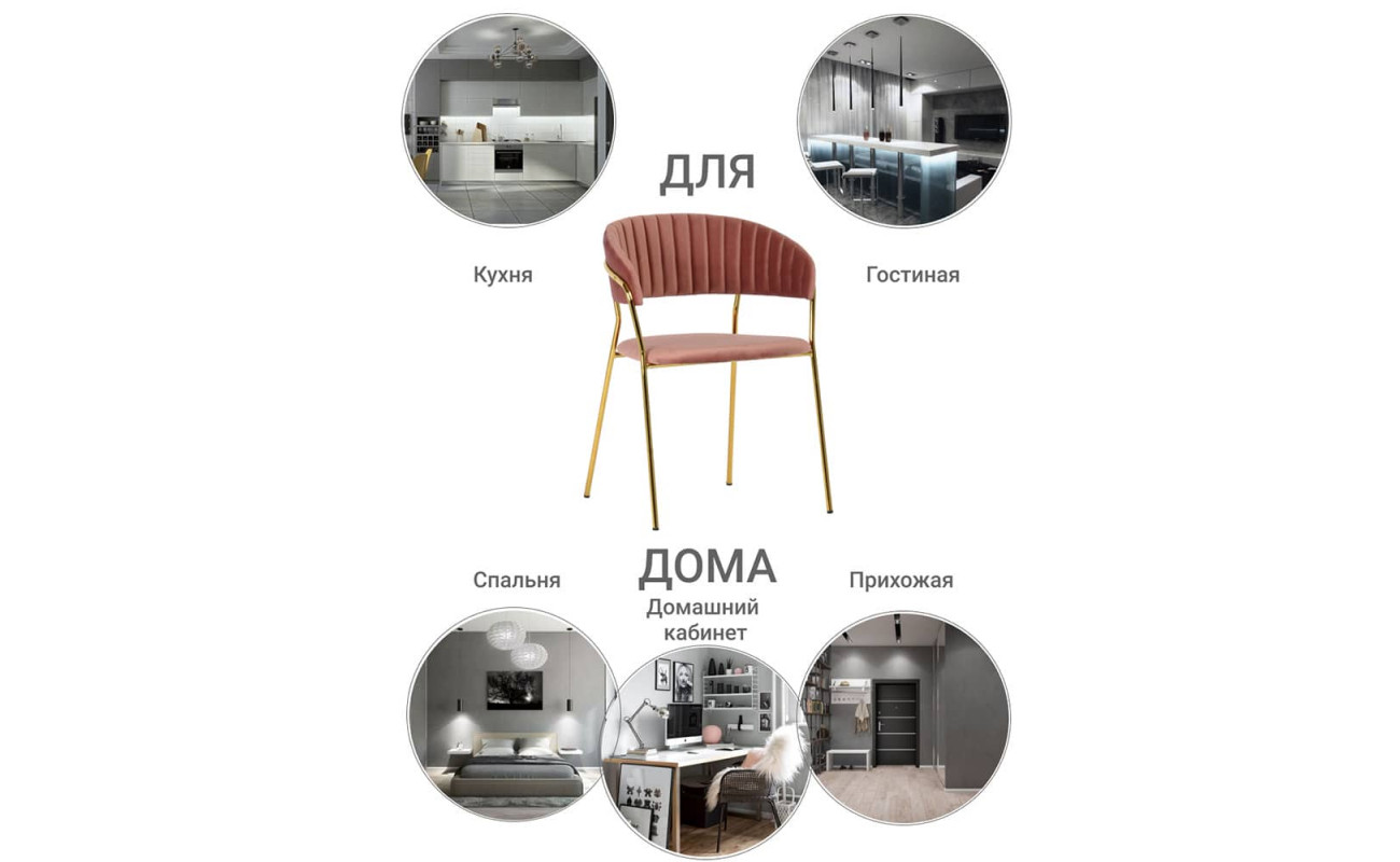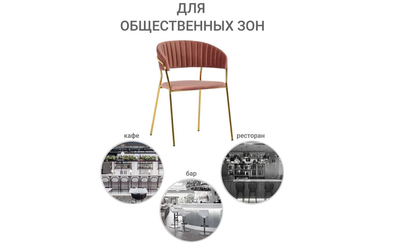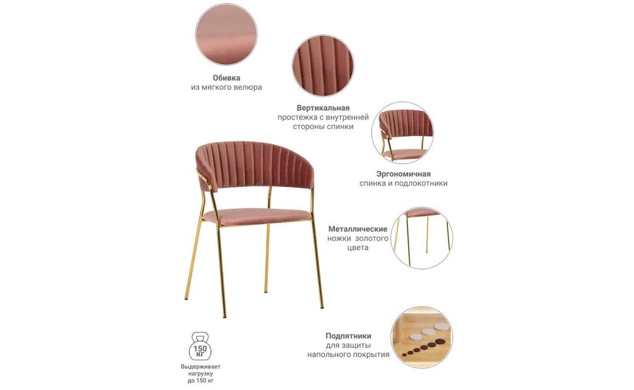 | Цвет ножекЗолотой | Материал спинкиВелюр | Материал ножекМеталл |