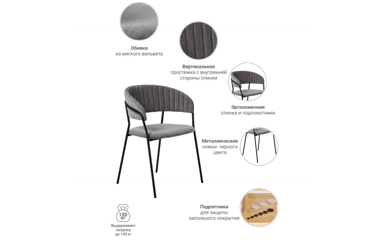 | Цвет ножекЧёрный | Материал спинкиВельвет | Материал ножекМеталл |
