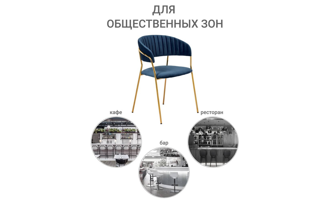 Стул Turin синий с золотыми ножками