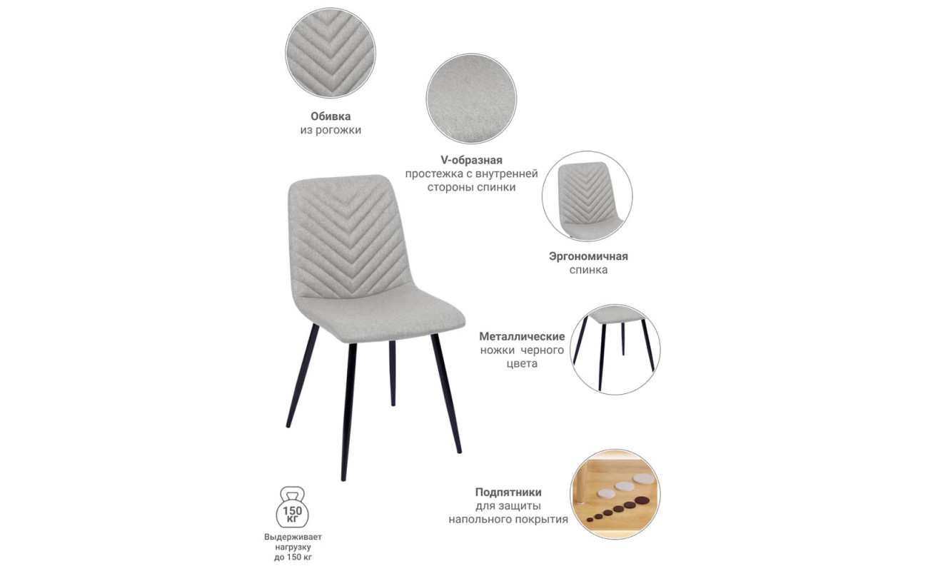 | Цвет ножекЧёрный | Материал спинкиРогожка | Материал ножекМеталл |